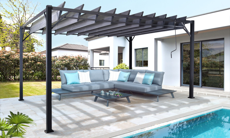 La pergola bioclimatique soko est une pergola à lames orientables design qui vous protège des intempéries. Pergola bioclimatique à lames orientables 4x3m adossée ou autoportée structure 100% aluminium thermolaqué. Pergolas à lames orientables dites bioclimatiques. Pergola lames orientables ondula par tende da sole. Pergola bioklimatique à lames orientables.